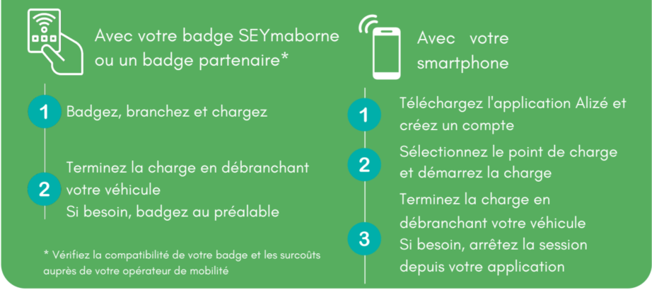 Une tarification différenciée selon le type de borne est mise en place sans coût d'abonnement à partir du 01 mars 2026. Pour information, l'achat du badge est au prix de 9.60€.